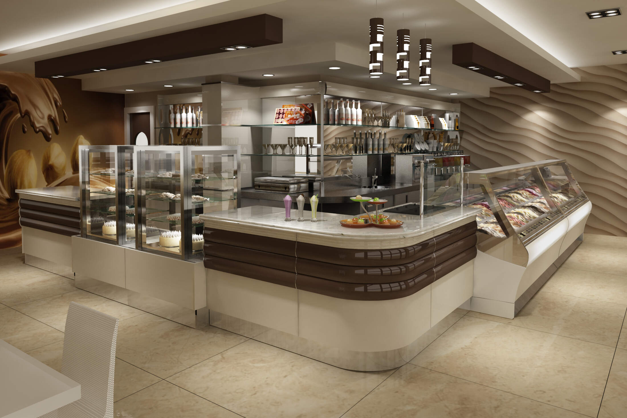 Abbiamo iniziato questo settore per gioco nel 2008, sviluppando una catena di Gelaterie di nostra proprietà, Questo Concept é stato molto apprezzato sia per la qualità del gelato sia per il design dei locali.  Da qui abbiamo sviluppati gli interni per Hotel, appartamenti di lusso e ville prestigiose. Avvalendoci dei migliori professionisti
