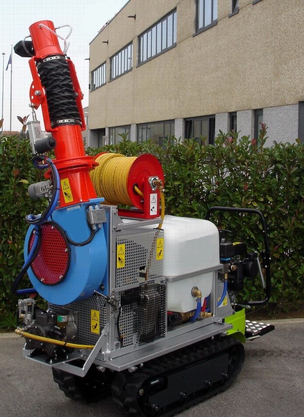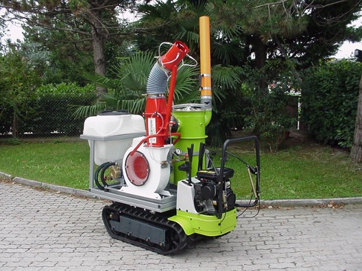 To solve this problem we have equipped the second prototype with a crawler and an indipendet engine. Now just one people could mouve the prototype within the palantation. The only problem was that it was necessary to stop the prototype to spray the product.